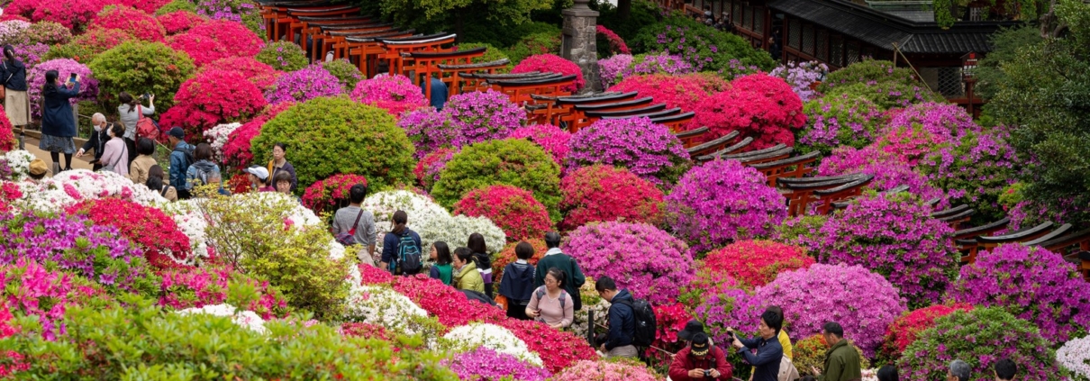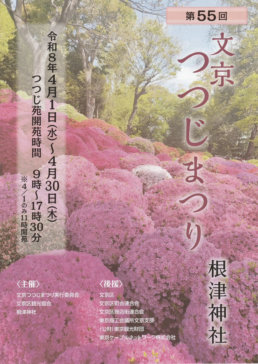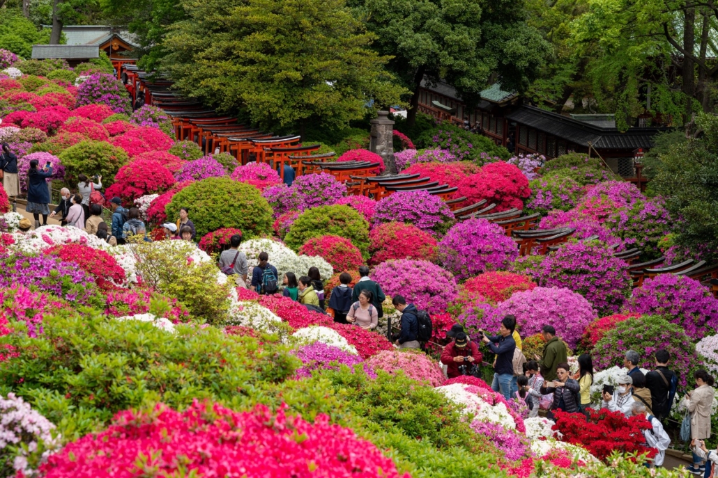 会場となる根津神社では、色鮮やかなつつじが境内を美しく彩り、多くの来場者で賑わいます。春の散策とともに、ぜひお立ち寄りください。